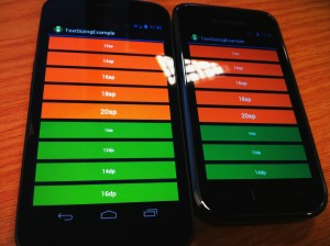 This morning I wanted to demo how android sizes text for our designer. So I wrote a quick app that displayed text sizes in a few ranges 10-20 sp , dp, and pt. A nice side effect was it also showed how well android handles the vast differences in screen sizes and densities out there.