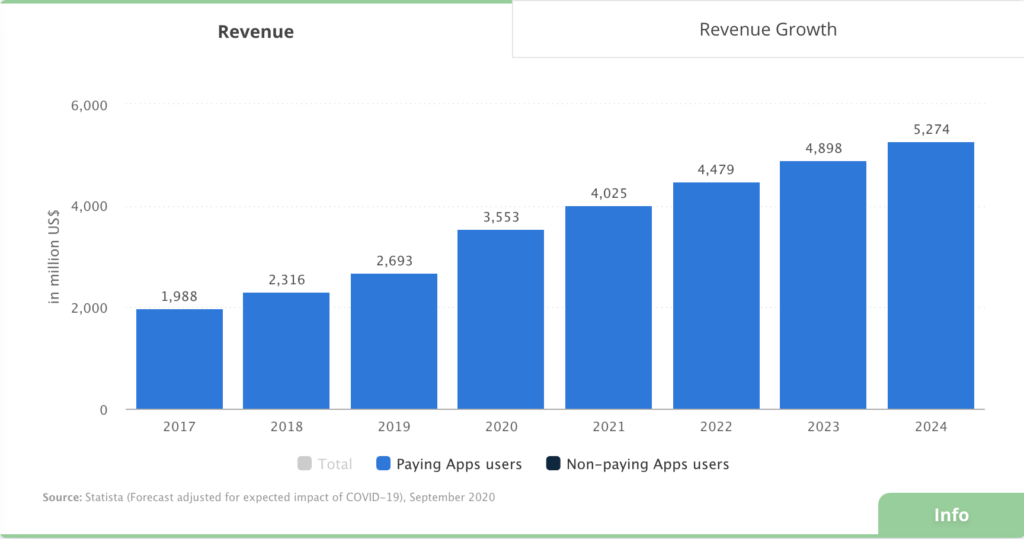 According to Statista revenue within mobile apps will see a sharp growth over the next number of years.