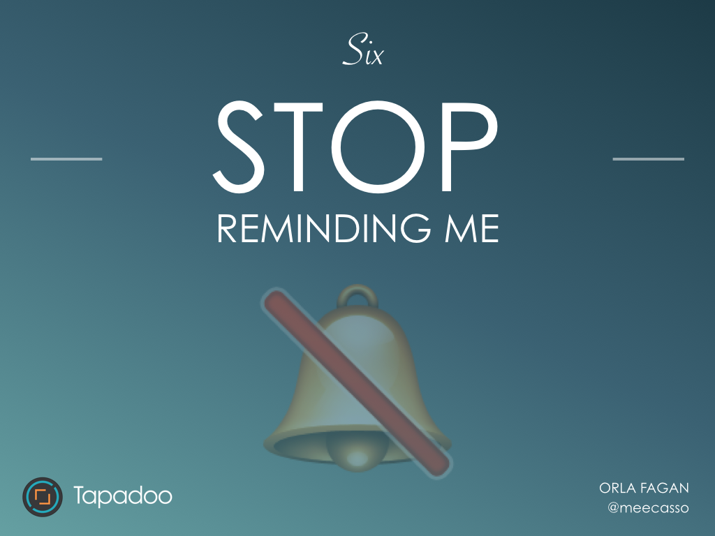 Adding reminders is often just a lazy attempt to engage users. We need to stop trying to automise people’s lives. The only thing reminders do is remind us that we are time poor. If I as a person am not in the right frame of mind to use your app, a reminder is not going to change that.
