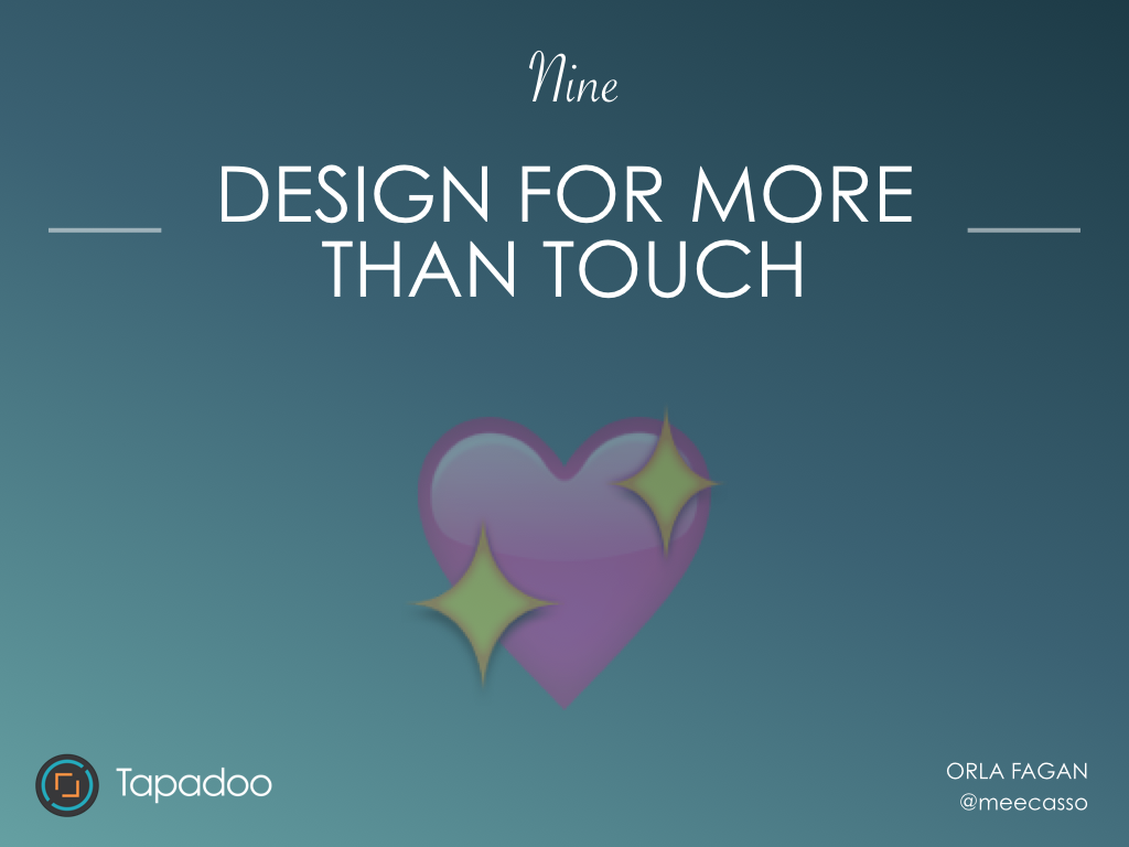 Design for feelings and responses. Take the stress away from situations that are already stressful. Design for moments. Big & small. When a user feels a connection with a product or brand it increases adoption rates and brand loyalty.