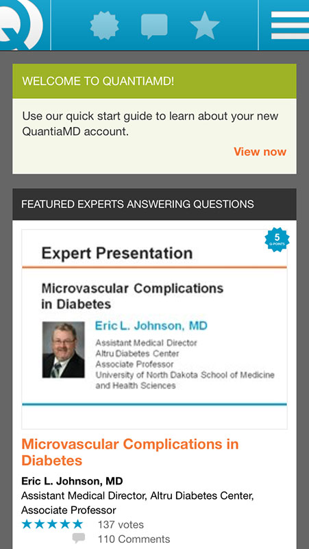 Students are also accessing case study quizzes or tests to help prepare for board examinations. QuantiaMD has a mobile CME app that provides interactive case studies that can be shared with colleagues.