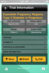 The app is available for iOS and iPad. It provides easy access to search the National Library of Medicine (NLM) database of available clinical trials worldwide. It can be used by clinical trial participants, investigators or students to gather detailed information about specific clinical trials.