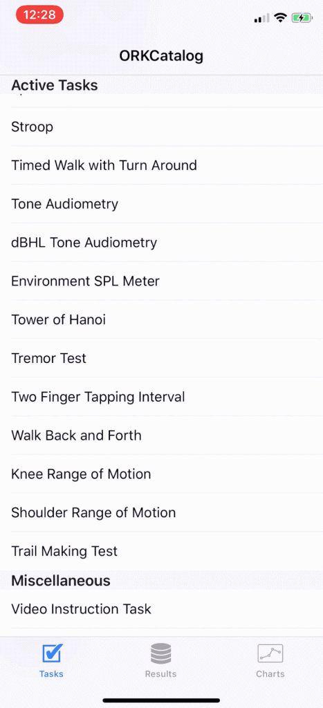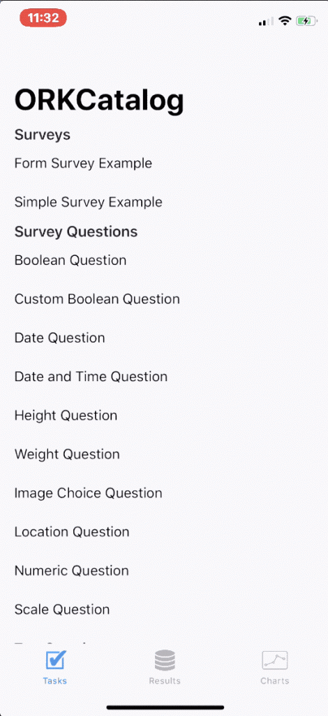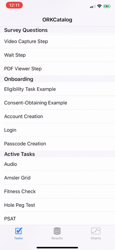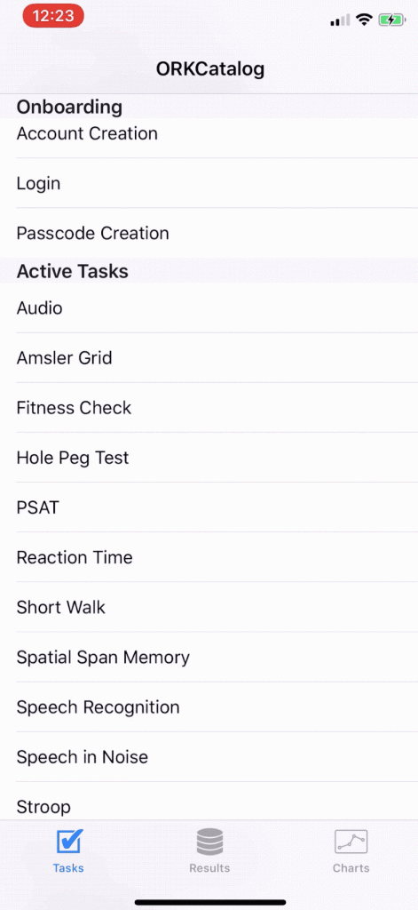 ResearchKit also provides a library of “active tasks”. These are common medical research assessments that can be done via a smart phone interface. Of course, the options are not exhaustive. However, the ability to include these with relative ease if they make sense in the context of your study is very impressive.