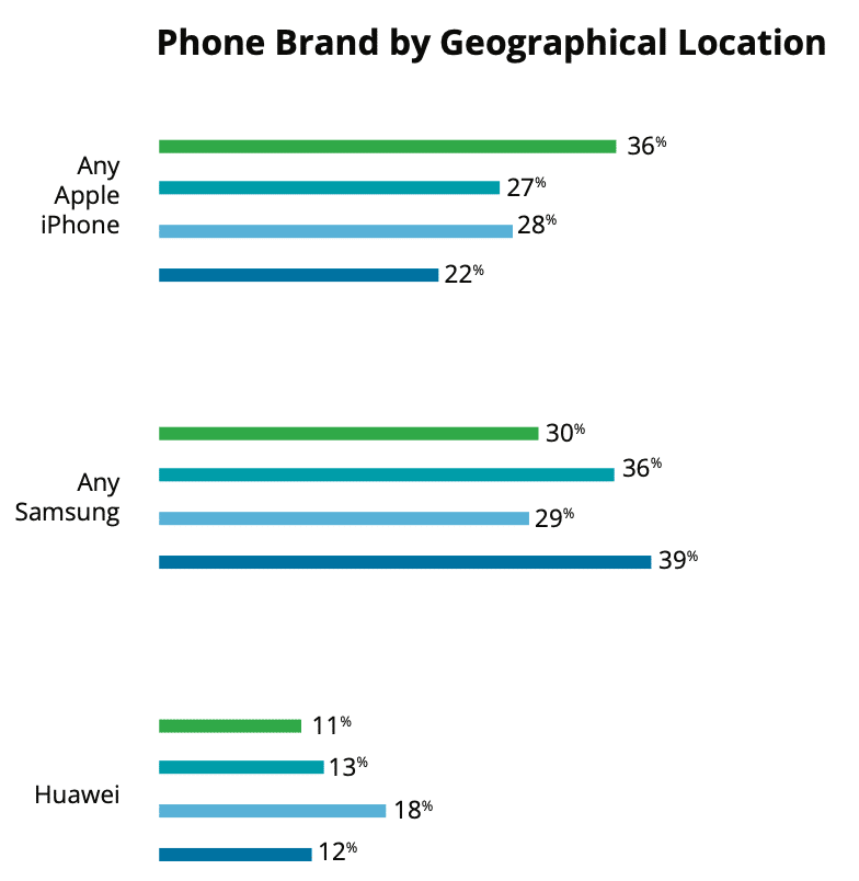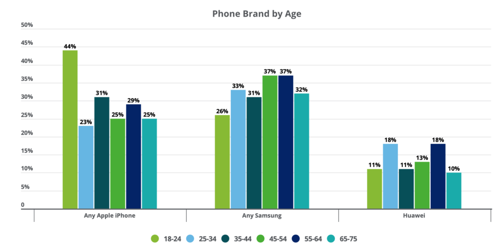 The most popular phone in Ireland is Samsung, followed by Apple but Huawei is the fastest growing.