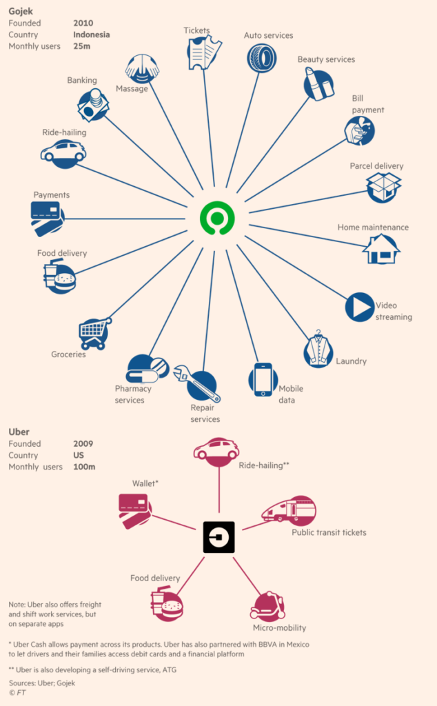 If Uber is looking to become the next super app it has some way to go, but the image below may act as a roadmap for what Uber needs to do to become a super app and compete with the likes of Gojek. Gojek offers 20 services to 25 million users.