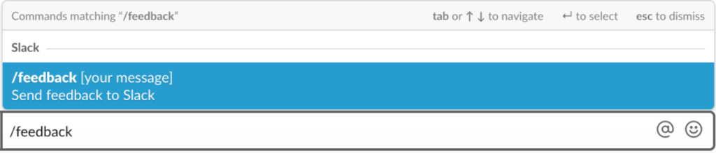 Slack allows users to send them a message with feedback directly within their platform. The command “/feedback” allows users to immediately submit feedback to the Slack team. The feedback can be given anywhere in the app and users don’t need to move to a feedback widget or chat window.