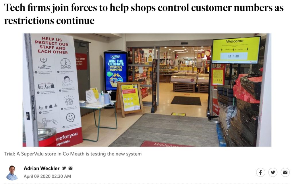 This system is now adopted by Musgrave. But something else interesting happened. We’re a member of IRDG, so we asked them to tell their membership about our occupancy management product. We figured, that there are other applications of this technology. We were thinking about factories, where shared facilities such as canteens must now manage the number of people present to ensure safety of their staff. We got our first factory install from that.