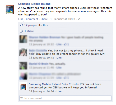I didn’t have to look far on the Samsung Ireland Facebook page for this: